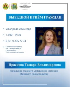 25 апреля 2026 г. в Червенском районном исполнительном комитете с 14.00 до 15.00 выездной прием …Читать далее «Прием граждан заместителем председателя Минского облисполкома»