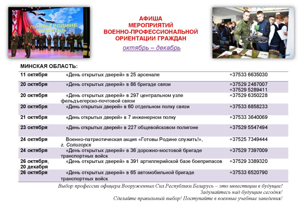 Опубликовано 13.10.202513.10.2025 Автор: Главный администраторАфиша мероприятий военно-профессиональной ориентации граждан