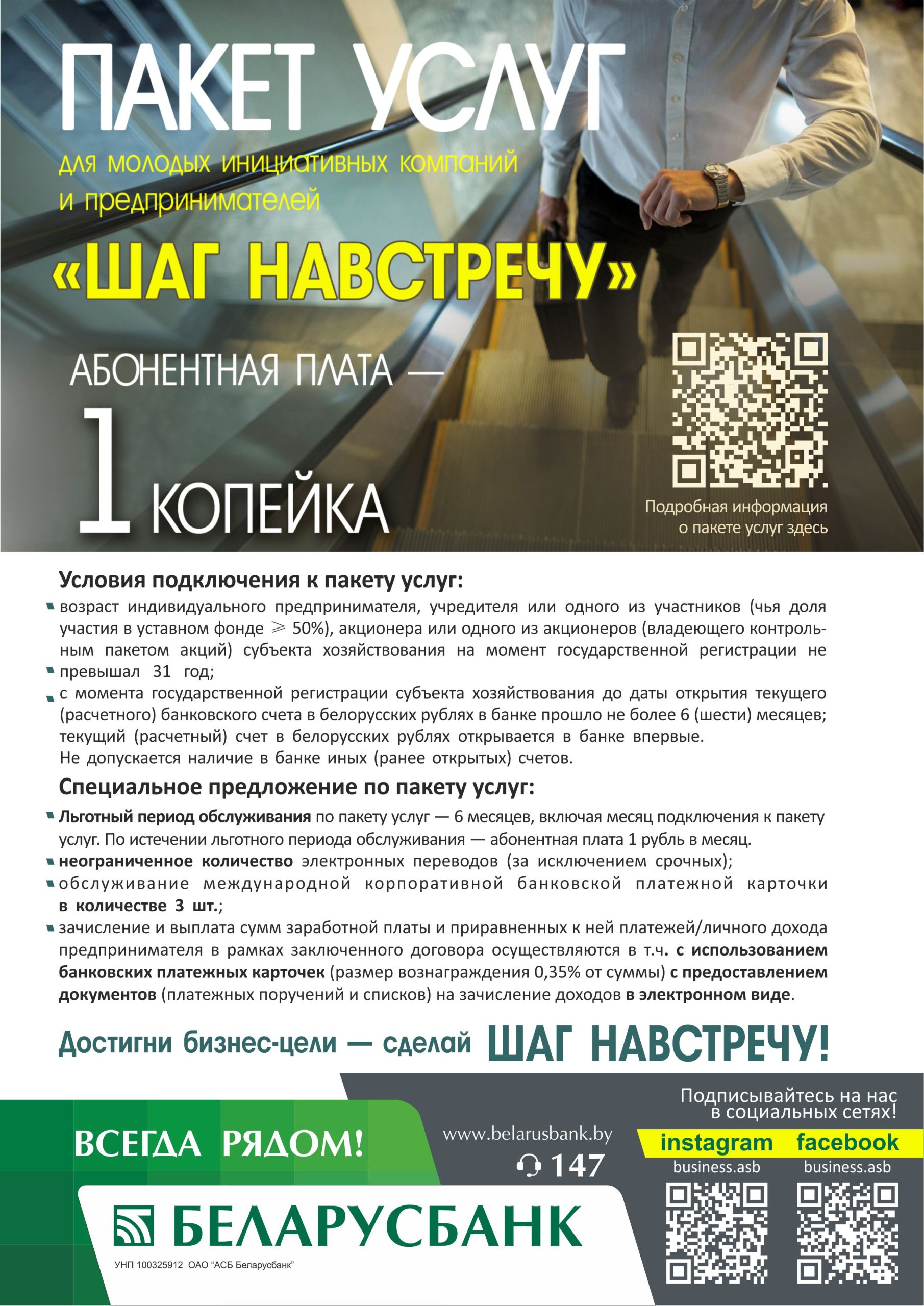 Корпоративный бизнес с Беларусбанком Акция Бизнес в плюсе Банковская гарантия Зарплатный проект за 1 рубль Страхование бизнеса Субъектам малого и среднего предпринимательства Эквайринг с выдачей наличных Эквайринг с использованием QR-кодов