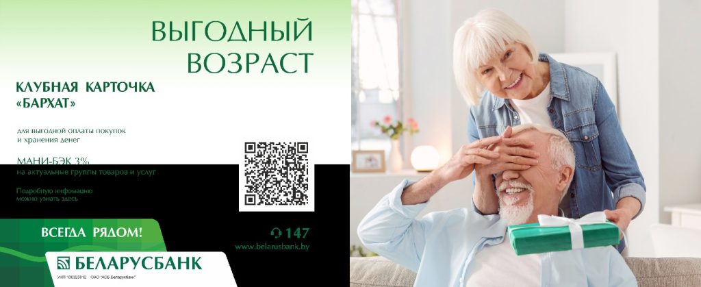 Учитывая данные изменения, Беларусбанк предлагает заблаговременно позаботиться о переводе в банк выплаты пенсии и других социальных выплат, оформив карту Клуба «Бархат».