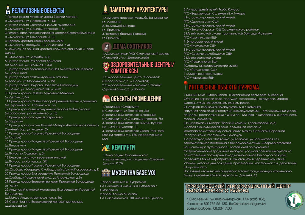 Туризм Государственное учреждение «Туристический информационный центр Смолевичского района» Туристические объекты Смолевичского района