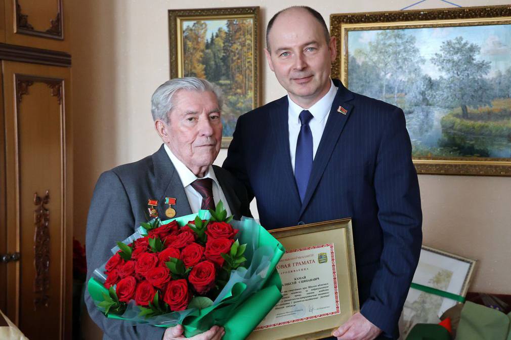 В этот праздничный день Алексей Кушнаренко лично вручил Алексею Степановичу Почетную грамоту Минского облисполкома и сердечно поздравил с юбилеем: