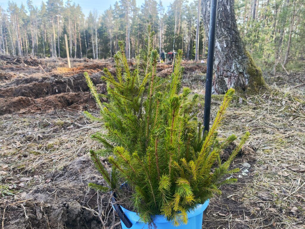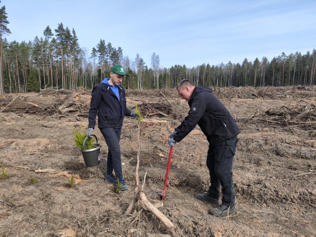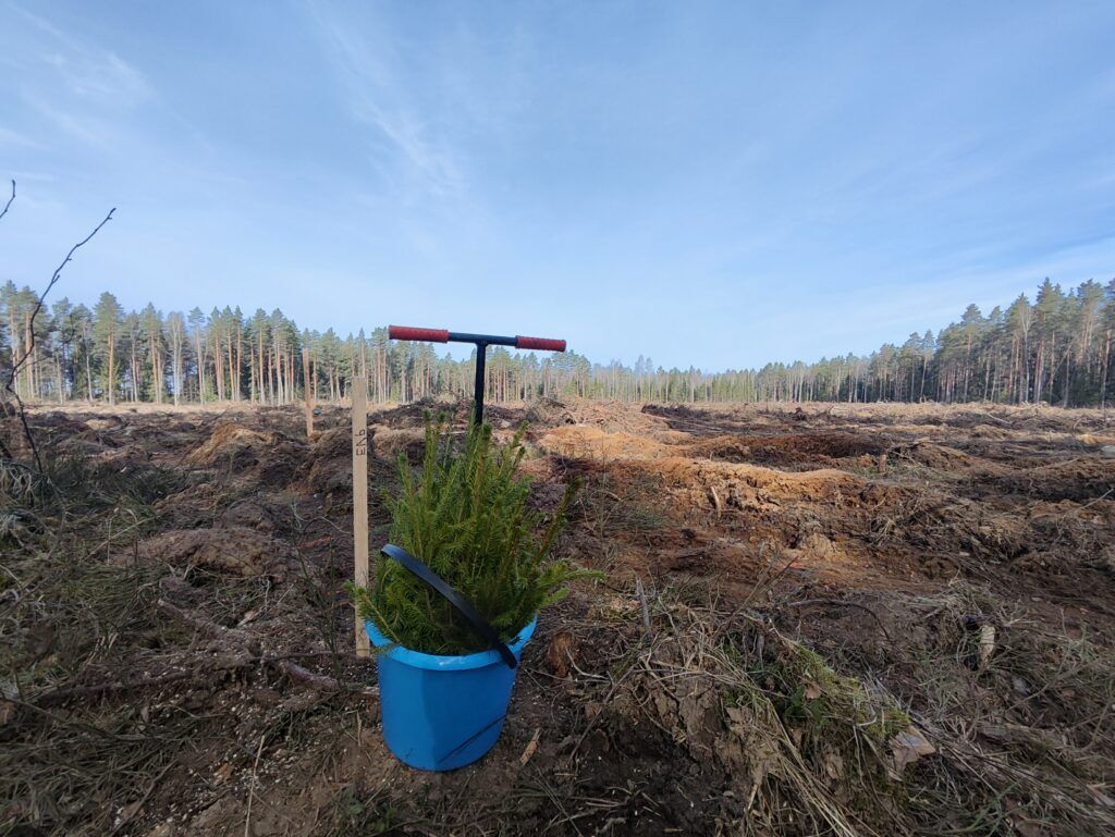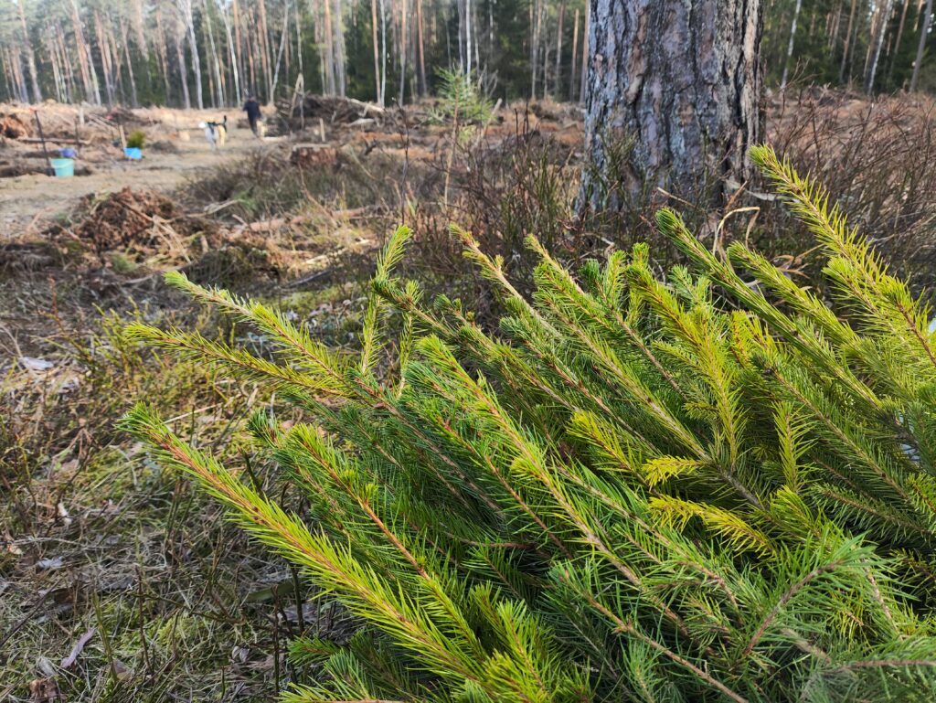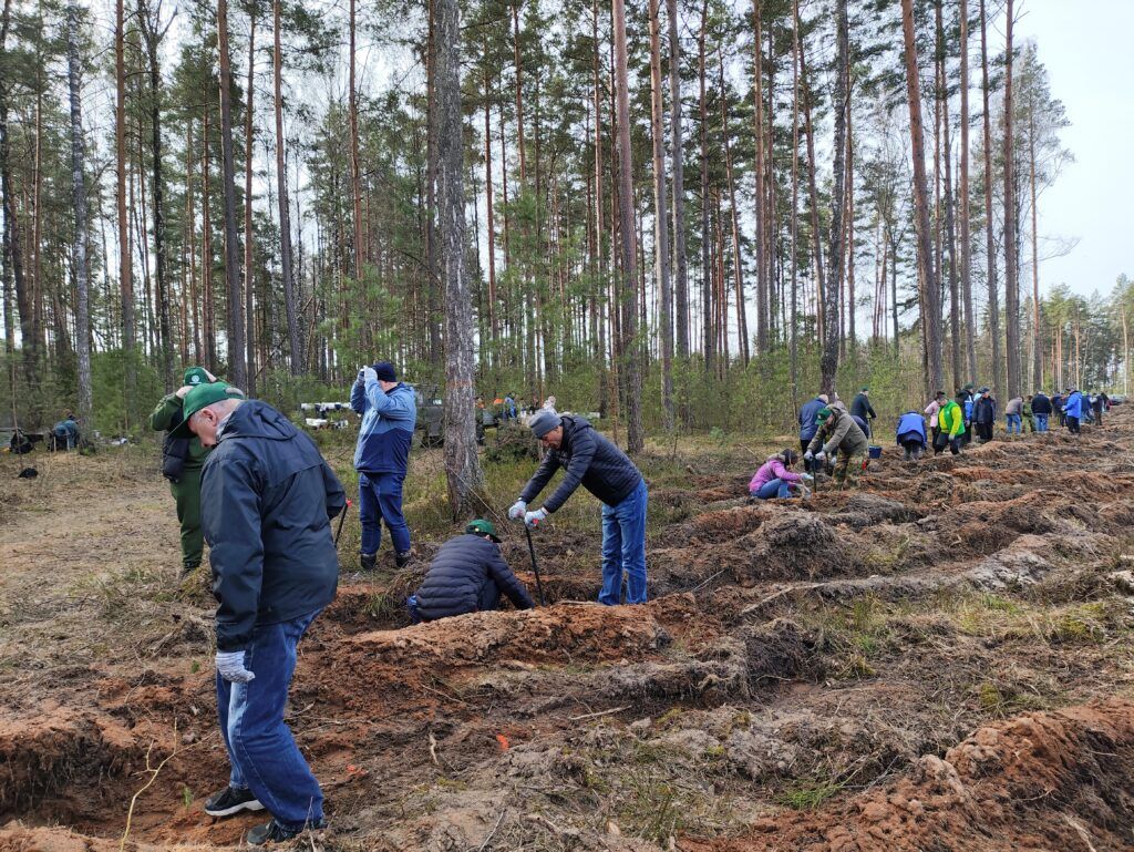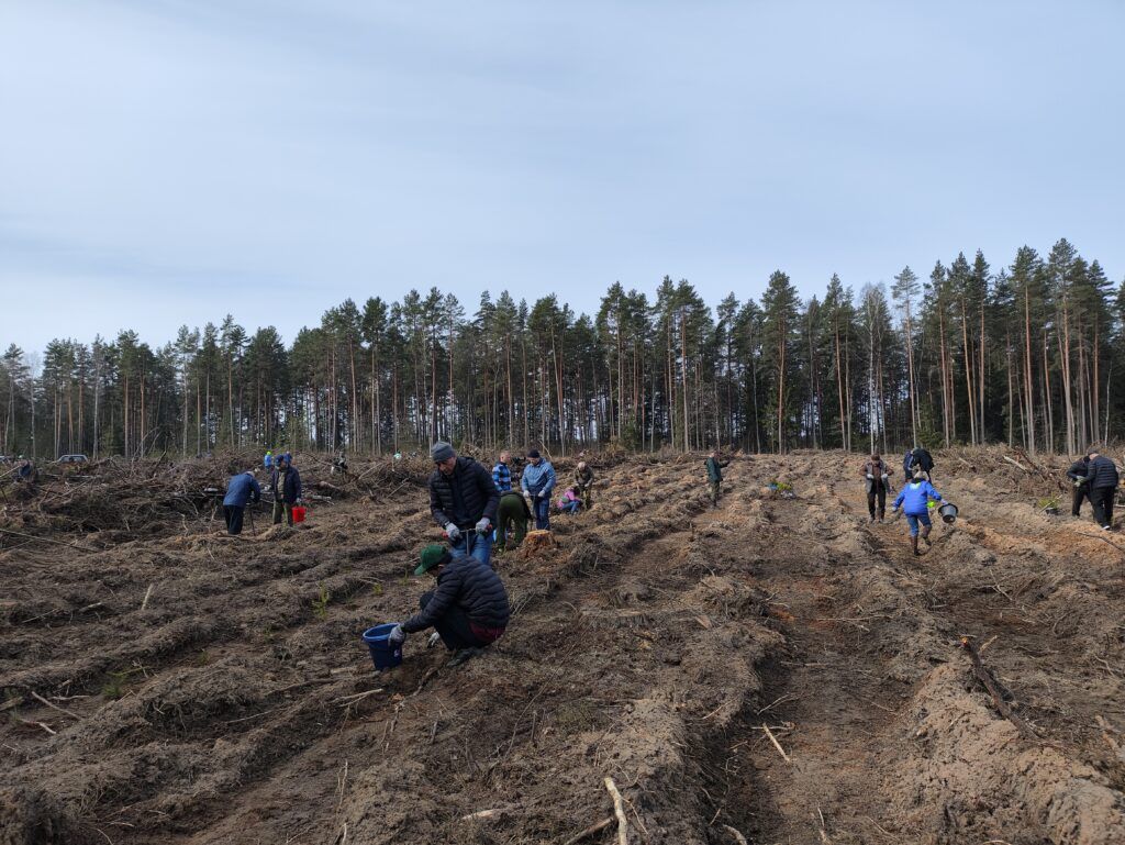 Недалеко от деревни Грядки участники акции высадили 3 гектара леса, это порядка 18 тысяч саженцев сосны обыкновенной и ели европейской.