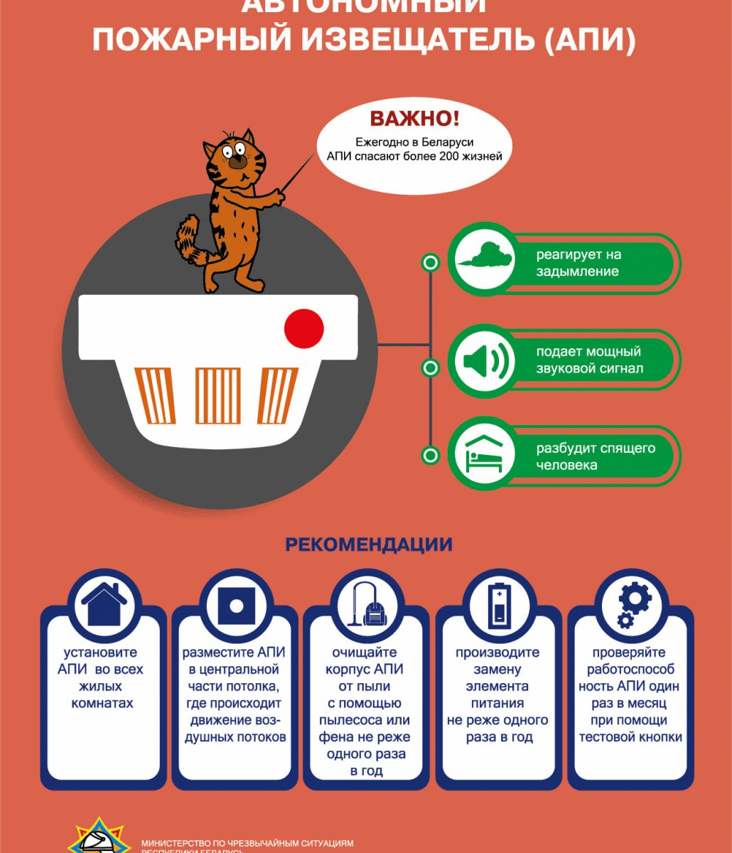С 24 ноября по 14 декабря Министерством по чрезвычайным ситуациям Республики Беларусь проводится широкомасштабная информационная компания, призванная повысить осведомлённость населения о значимости и правильном использовании автономных пожарных извещателей (АПИ), а также о важности их установки и регулярного технического обслуживания.