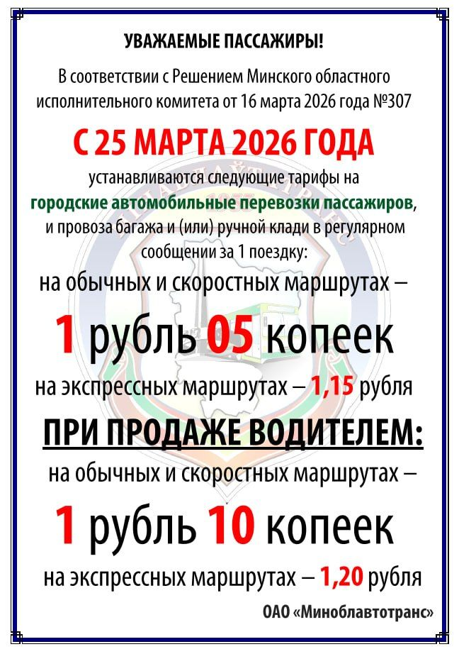 Это предусмотрено решением Минского областного исполнительного комитета № 307 от 16 марта 2026 года. Об этом сообщает Миноблавтотранс.