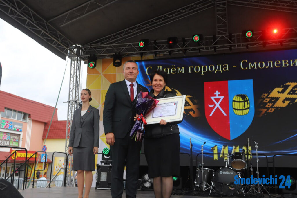 За многолетний добросовестный труд, высокий профессионализм, значительный вклад в развитие дорожной сети Смолевичского района почетными грамотами Смолевичского райиспокома в праздничный день была награждена Ирина Дервана — производитель работ филиала коммунального унитарного предприятия «Минск Облдорстрой» — «Дорожное ремонтное строительное управление № 123», народный ансамбль песни «Плисса» филиала Октябрьский сельский дом культуры, сценический дуэт Сымона и Сымонихи – Наталья Винцукевич, художественный руководитель государственного учреждения культуры «Смолевичский районный центр культуры и народного творчества», делегат Седьмого Всебелорусского Народного Собрания, и Владимир Гавриков — директор Смолевичского районного центра культуры и народного творчества.