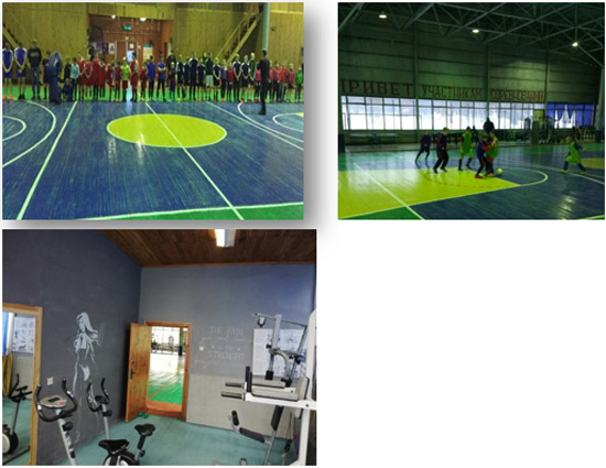 Материально-спортивная база: спортивный зал, сауна, тренажерный зал, раздевалки с душевыми, бильярд, настольный теннис, прокат спортивного и туристического инвентаря.