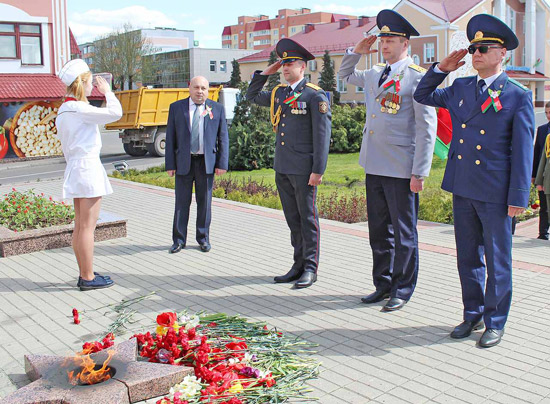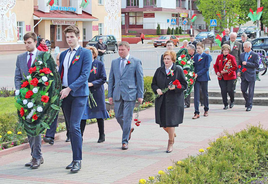 В канун этого Великого Праздника председатель Минского областного Совета депутатов Наталья Якубицкая, председатель Смолевичского райисполкома Андрей Ратомский, председатель районного Совета депутатов Марина Клюева, а также руководители предприятий и учреждений, силовых структур, члены общественных объединений собрались у вечного огня, где почтили память павших минутой молчания и возложили венки и цветы к памятнику советским воинам-освободителям в Смолевичах.