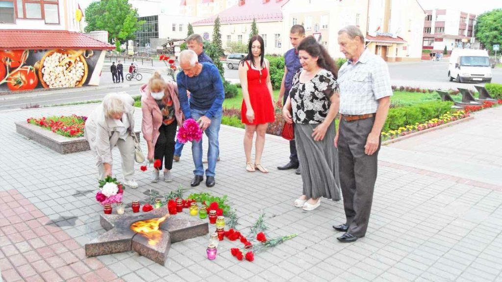 Накануне Дня всенародной памяти жертв Великой Отечественной войны, который в нашей стране отмечается 22 июня, представители Смолевичского районного исполнительного комитета и районных общественных организаций, ветераны и молодежь Смолевиччины в знак уважения и признательности возложили цветы к памятнику погибшим воинам и партизанам на главной площади города Смолевичи и почтили память жертв фашизма минутой молчания (на снимках).