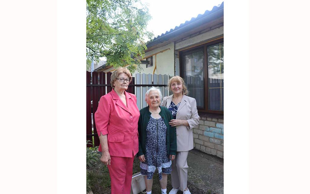 На улице Коммунистической нас радушно встретила Мария Даниловна Прокапчук. В свои 84 она бодра и преисполнена оптимизмом. Анна Ивановна и Тамара Дмитриевна поздравили ветерана труда, пожелали ей деятельного долголетия, крепкого здоровья и вручили продуктовый набор.