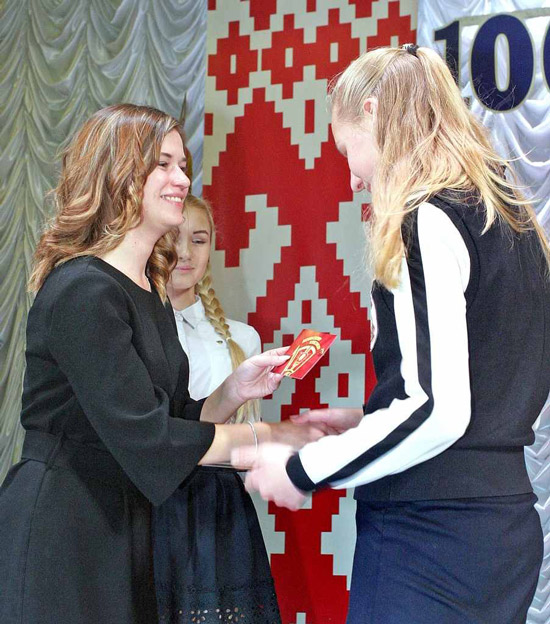Алексей Евдокимович и Каролина Александровна вручили членские билеты ОО «Белорусский Республиканский союз молодежи» молодому поколению Смолевиччины.
