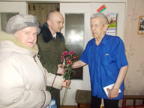 Поприветствовать всех тех, кто стоял и стоит на защите Отечества и беззаветно служит Родине собрались почётные гости. Всех собравшихся участников Великой Отечественной войны поздравили Клюева М.М., Шерстень Ю.М. и Чечёткина А.И., вручили юбилейные медали «100 год Узброеных Сiл Рэспублiкi Беларусь».