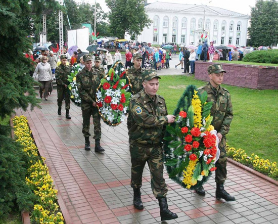 Вечером смолевичан собрал тематический митинг-концерт «Беларусь – моя гордость и слава» с участием ветеранов и руководства района. К гостям праздника с поздравлениями обратились председатель Смолевичского районного Совета депутатов Марина Михайловна Клюева, председатель Смолевичского районного Совета ветеранов Анна Ивановна Чечеткина, а также член общественного объединения «Белорусский республиканский союз молодежи» Лидия Алексеевна Тылецкая.