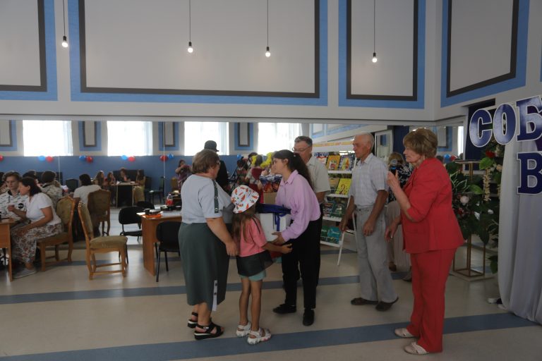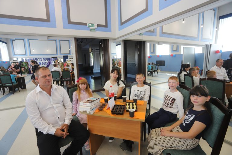 Поудобнее рассевшись за столиками со сладостями, взрослые и дети ждали начала праздника. Среди них — дружная семья Беляковых. Пятеро ребят — Эльвира, Леша, Макс, Соня, Ира — приехали вместе с папой в райцентр на праздник: у остальных присутствовать не получилось в силу разных обстоятельств. Сейчас у Беляковых десять деток. Семеро из них — школьники. А потому любая помощь для семьи с таким количеством детей не лишняя. Соня уже учится в колледже, а другие ребята — в третьем, пятом шестом классах, есть и первоклассница. О себе рассказывают охотно. Говорят, что отлично провели лето: отдыхали в лагерях и санаториях, купались в бассейне. По словам папы Сергея, все стараются учиться хорошо: в семье за этим строго следят. По школе ребятишки уже соскучились, с нетерпением ждут 1 Сентября и начала занятий.