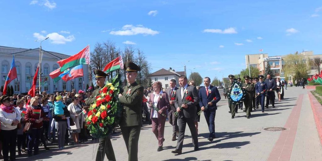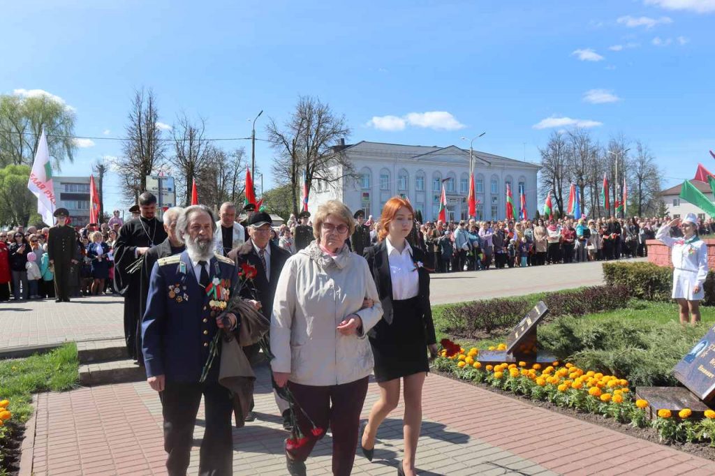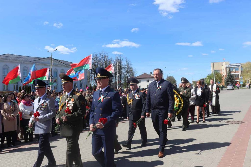 Руководство района, представители правоохранительных органов, военнослужащие, ветераны, члены общественных объединений, спортсмены, представители трудовых коллективов, люди старшего поколения, молодежь, детвора заполнили центральную площадь. Нарядные, с цветами в руках и счастливыми улыбками на лицах, смолевичане пришли к монументу, чтобы отдать дань памяти тем, кто ценою собственной жизни завоевал право на мирную жизнь для будущих поколений.