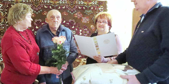 Руководство сельисполкома и Совета ветеранов Адам Адамович вместе с дочерью Зинаидой встречал у самых дверей, гостеприимно пригласил в дом. После того, как юбиляра поздравили с 95-летием, вручили цветы и подарки, Адам Адамович поделился своими воспоминаниями о тяжелых испытаниях, пережитых во время Великой Отечественной.