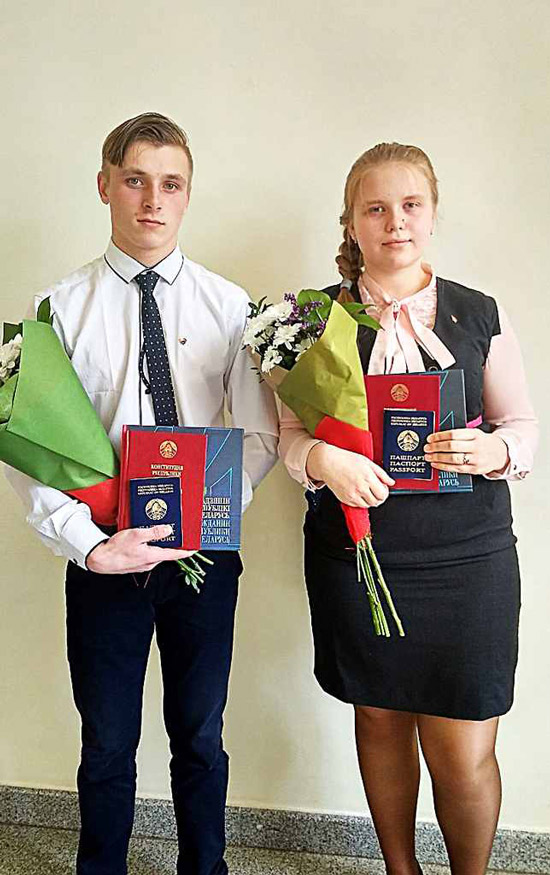 В этот день в Несвиже первый официальный документ вручили и талантливым ребятам города Смолевичи – учащейся ГУО «Средняя школа №3 г.Смолевичи» Анастасии Задиран и учащемуся ГУО «Средняя школа №2 г.Смолевичи»Илье Лузанову.