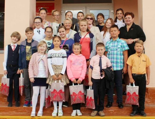 Наборы канцелярии, которые пригодятся в школе, приготовил для 28 учащихся средней школы №3 г. Смолевичи, ребят из многодетных семей, Смолевичский районный Совет ветеранов. Вручить ребятам подарки приехали председатель Смолевичского районного Совета ветеранов Анна Ивановна Чечеткина, депутат Минского областного Совета депутатов Марина Ивановна Меркуль, заместитель председателя Минской областной ветеранской организации Регина Станиславовна Кузьмич.